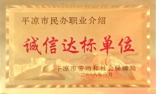 2008年公司職業(yè)介紹所被平涼市勞動和社會保障局評為“誠信達標單位”;